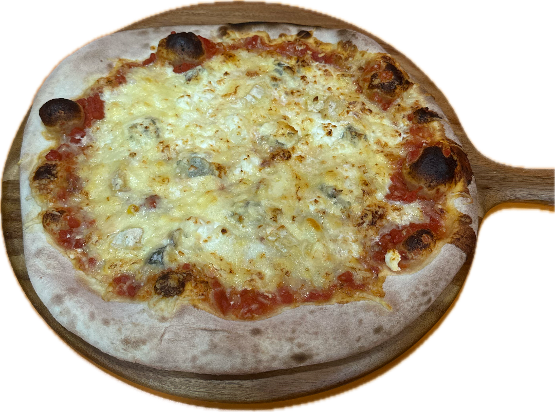 sauce tomate, emmental, bleu, chèvre, reblochon