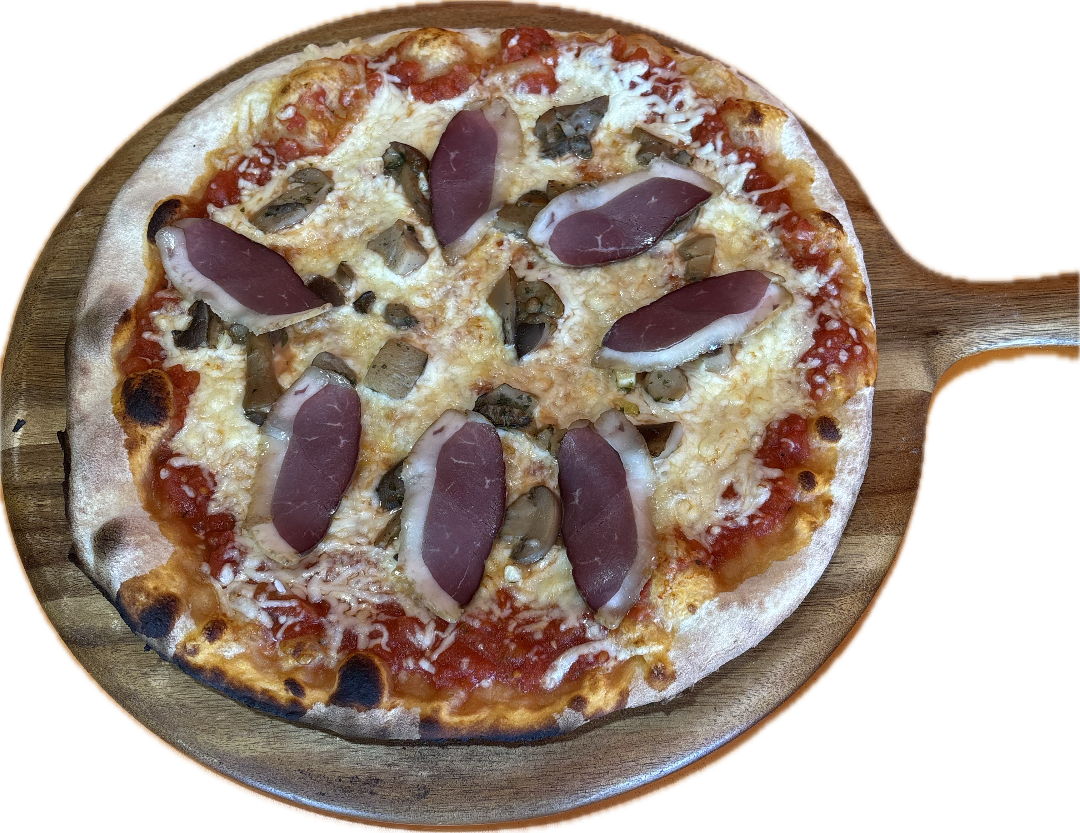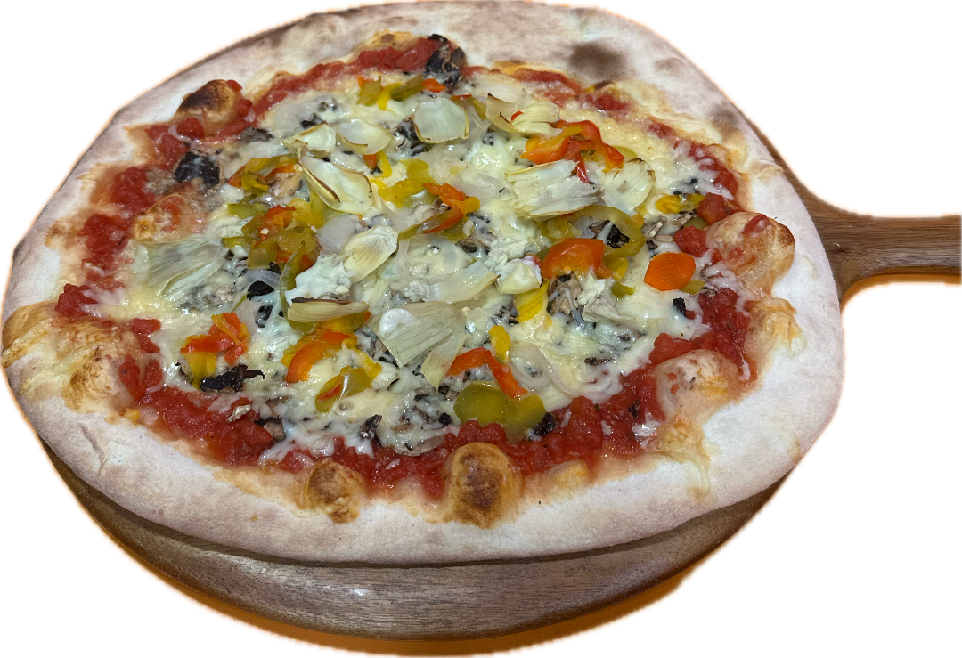 sauce tomate, emmental, épaule, artichauts, champignons frais