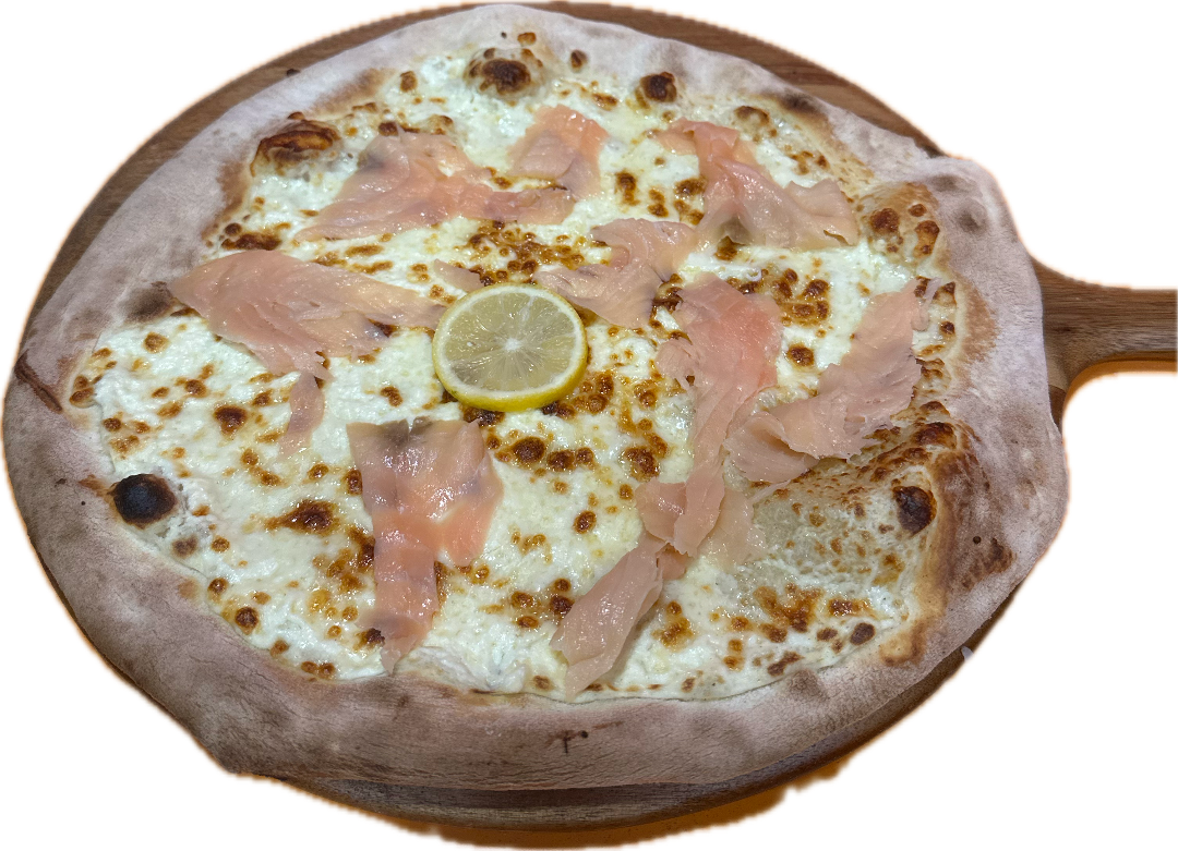 crème, mozzarella, après cuisson : saumon fumé/citron